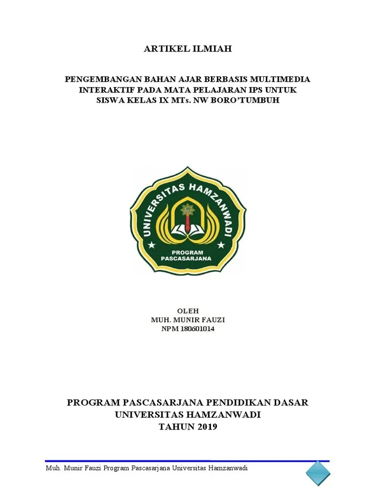 16 darmawan, sholeh, pengembangan bahan ajar berbasis multimedia materi pengetahuan dasar. Panduan"pengembangan bahan ajar berbasis multimedia" ini memberikan pengetahuan dan keterampilan untuk mengembangkan multimedia yang sederhana. Kelayakan bahan ajar berbasis multimedia interaktif sebagai media pembelajaran pada mata pelajaran kkpi. Produk tahun pertama adalah menghasilkan naskah pembelajaran bahan ajar berbasis multimedia interaktif pembelajaran berbasis kecerdasan majemuk dan artikel. Penelitian ini merupakan penelitian research and .